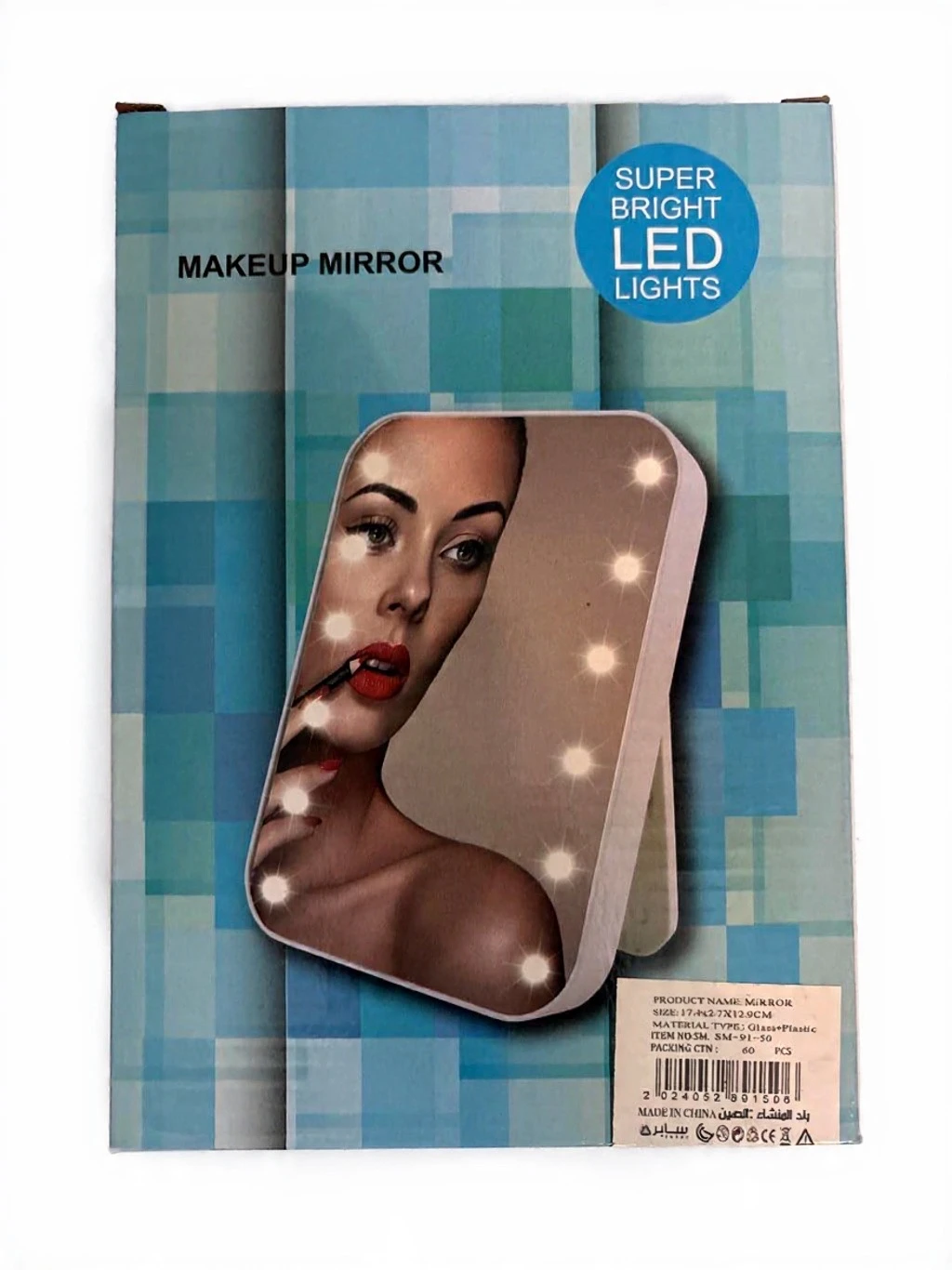 ✨ اكتشفي مرآة المكياج المزودة بإضاءة LED فائقة السطوع التي تمنحك رؤية واضحة وتفاصيل دقيقة أثناء وضع المكياج. 🔹 تصميم أنيق وعصري يناسب جميع الديكورات. 🔹 إضاءة قابلة للتعديل لتناسب جميع الأوقات والإضاءة. 🔹 مثالية للاستخدام اليومي أو للسفر. 🔹