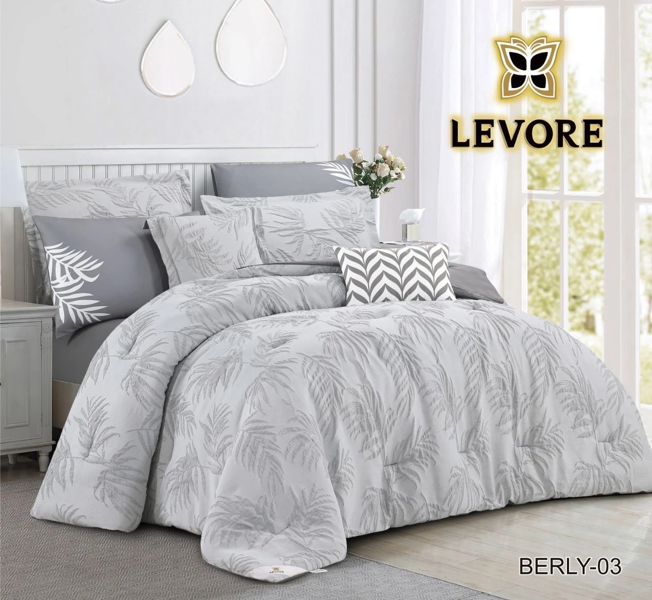 مفرش 8 قطع صيفي فاخر مشجر بتصميم جديد 1-لحاف نفرين 240*220 1-شرشف مغاط200*200 2- كيس مخده 50*75 2- كيس مخده 50*75 1-كيس خداديه 45*45 1-كيس خداديه 30*50