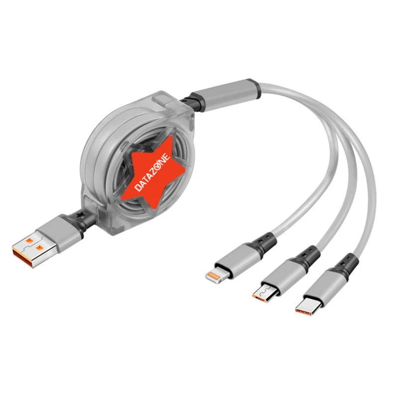 سلك شاحن 3 في 1 قابل للسحب، للأيفون والتايب سي والمايكرو الصغير لون رصاصي