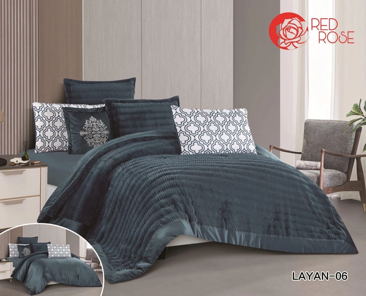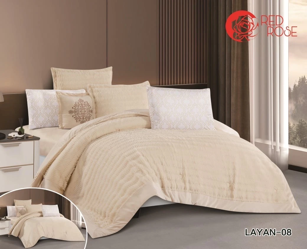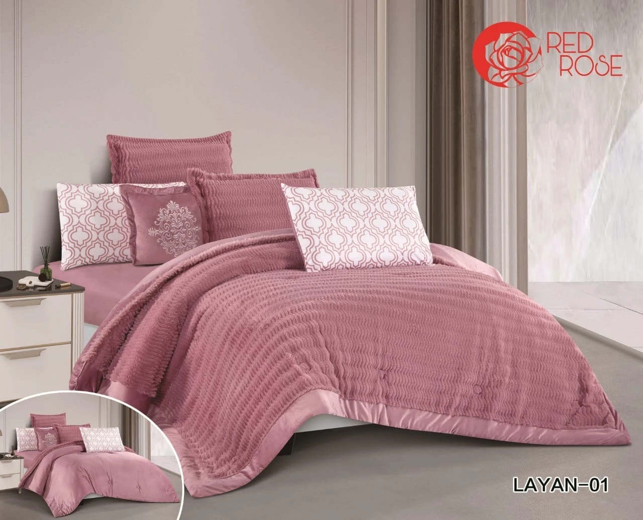 بأفضل الخامات مفرش شتوي وجهين مخمل مع فرو الارنب ناعم نفرين يتكون من 7 قطع عباره عن 👇 1 لحاف نفرين 240*260 1 شرشف مغاط 200*200 2_ كيس مخده ساده 50*75 2 - كيس مخده مشجر 50 *75 1- كيس خداديه مربع 45*45