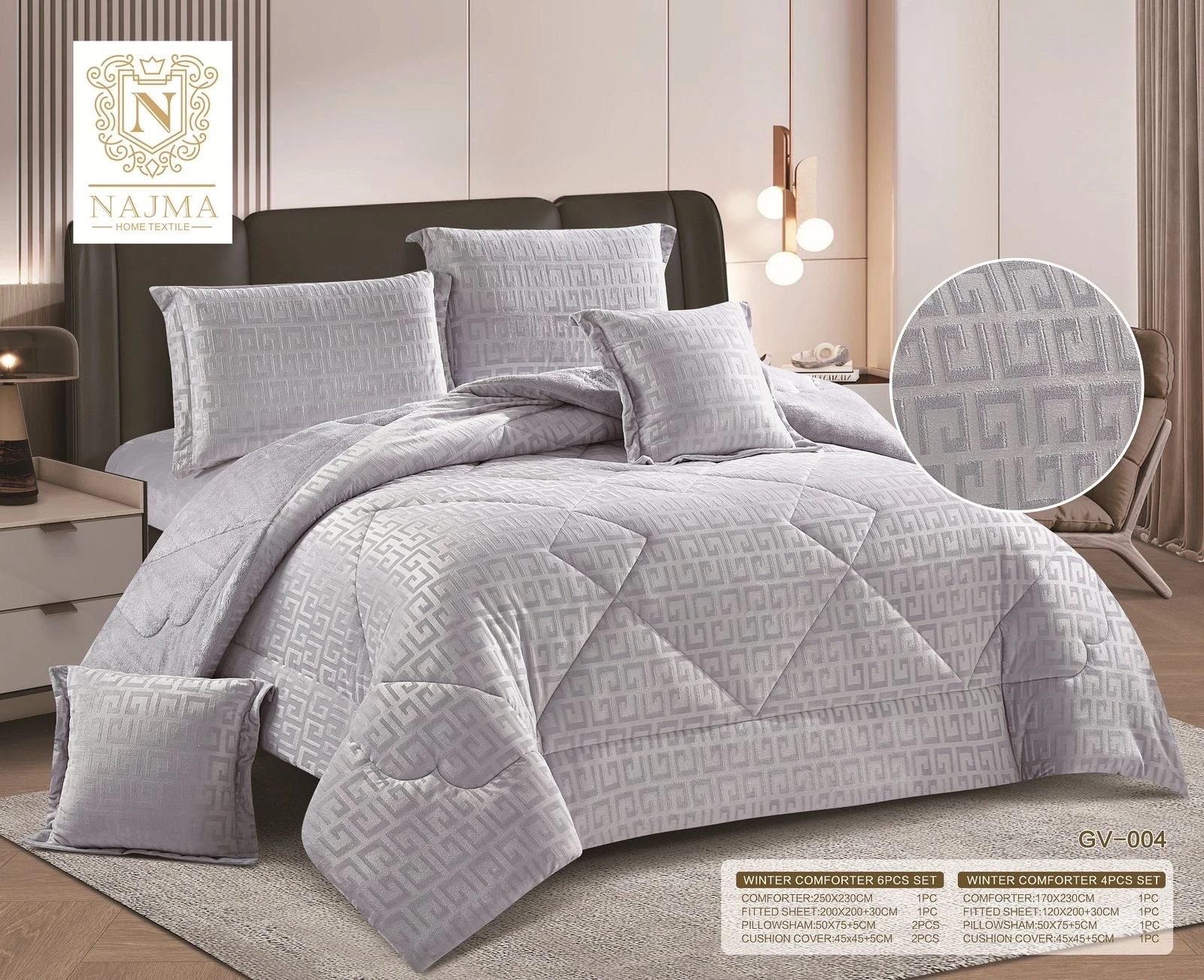 كما يوجد نفر ونص ونفر 4قطع يتكون عباره عن👇 1 لحاف 170*230 1 شرشف مغاط 120*200 1كيس مخده 50*70 1 كيس خداديه 45*45