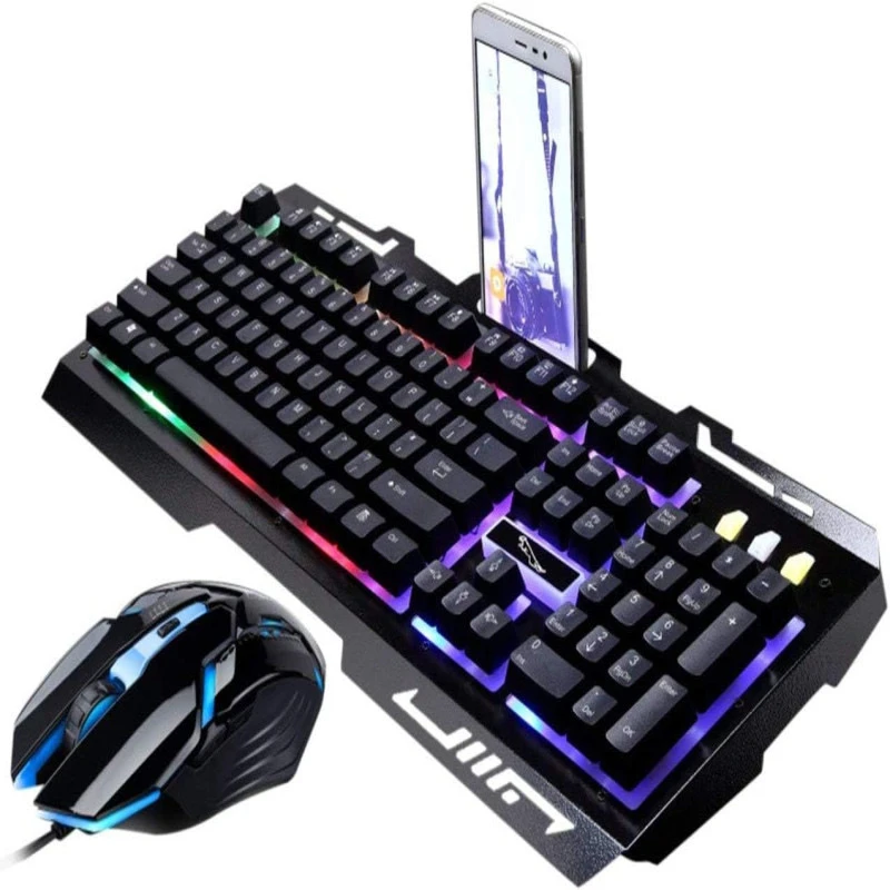 طقم كيبورد لوحة مفاتيح ميكانيكية مع ماوس بمنفذ وماوس ألعاب ضوئي، طراز