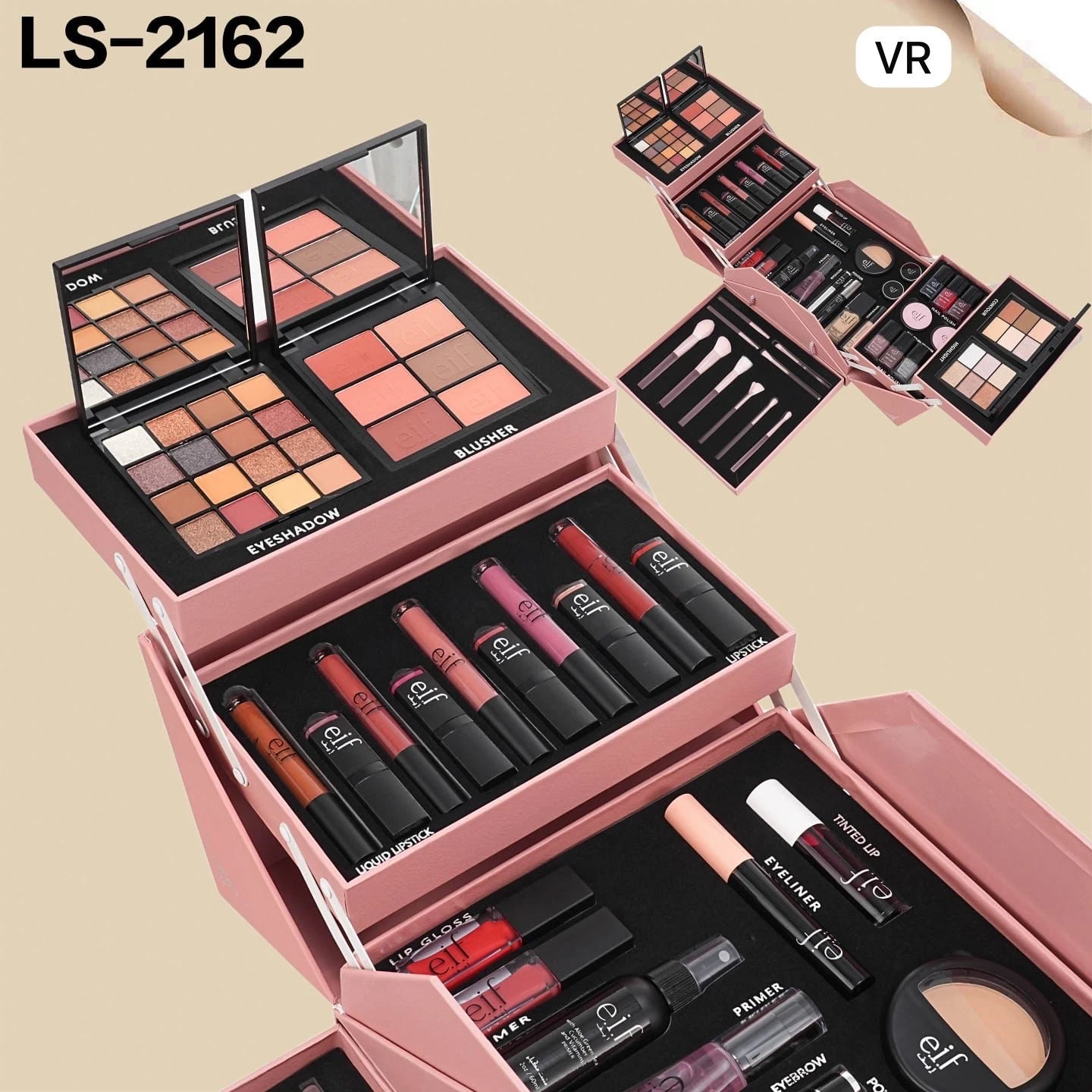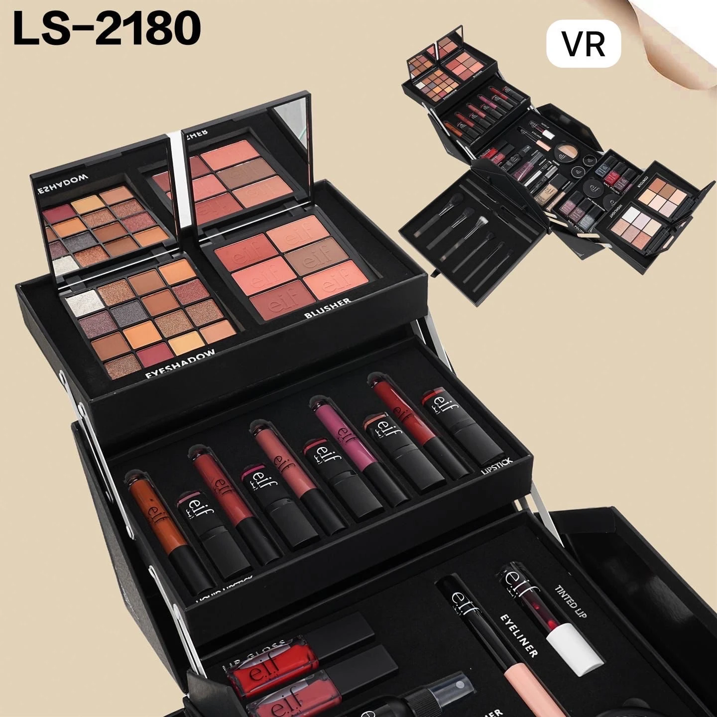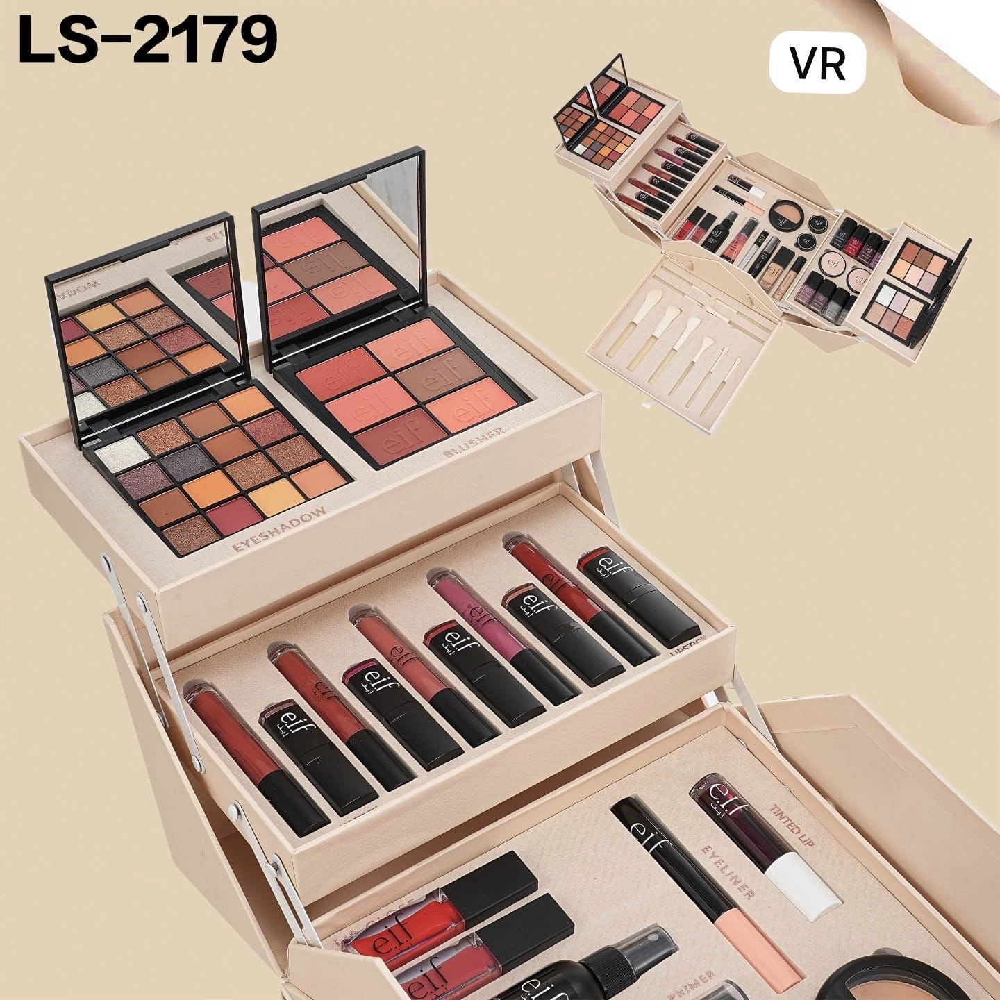 بوكس ايلف الجديدe.i.fالمكون من مجموعه كبيره وكامله من المكياج بوكس ايلف اكبر مجموعه تناسب العاريس وصالونات التجميل والهداياء كل ماتحتاجين من مكياج العيون وشافيف واحمر الخدود الي كريمات الاساس مجموعه كبيره متوفره في بوكس ايلف الجديد