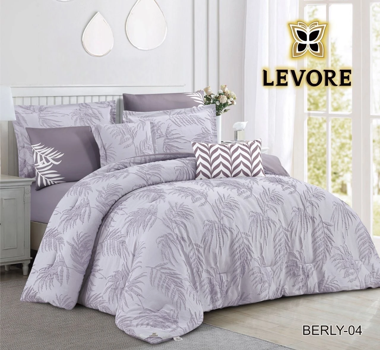 مفرش 8 قطع صيفي فاخر مشجر بتصميم جديد 1-لحاف نفرين 240*220 1-شرشف مغاط200*200 2- كيس مخده 50*75 2- كيس مخده 50*75 1-كيس خداديه 45*45 1-كيس خداديه 30*50