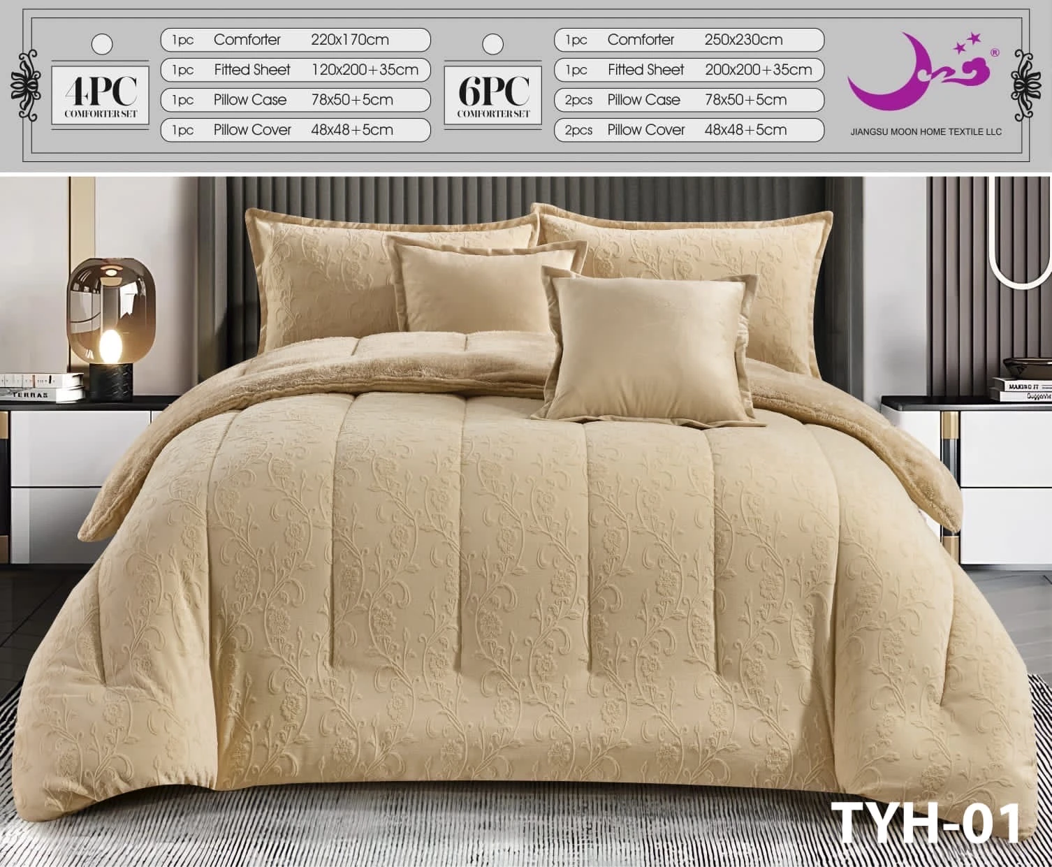 مفرش شتوي وجهين وجه مخمل وجه فرو نفرين 6 قطع يتكون من👇🏻👇🏻👇🏻 1-لحاف نفرين 220*240 1-شرشف مغاط 200*200 2_كيس مخده 50* 75*5 2-كيس خداديه 45*45