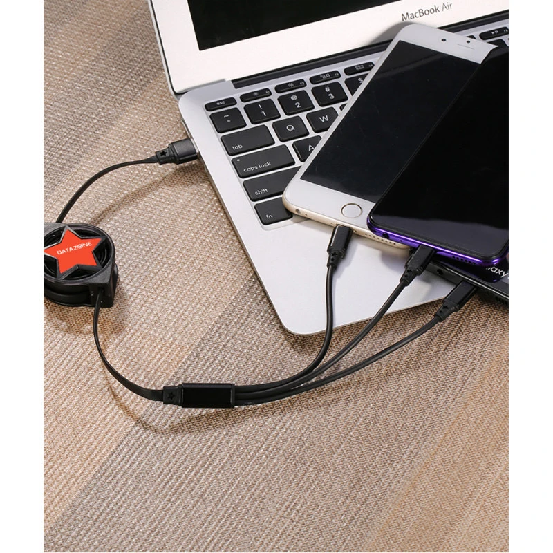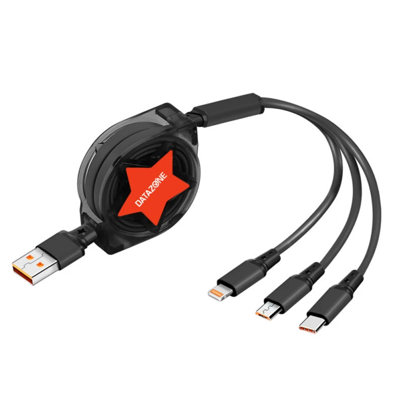 سلك شاحن 3 في 1 قابل للسحب، للأيفون والتايب سي والمايكرو الصغير لون اسود