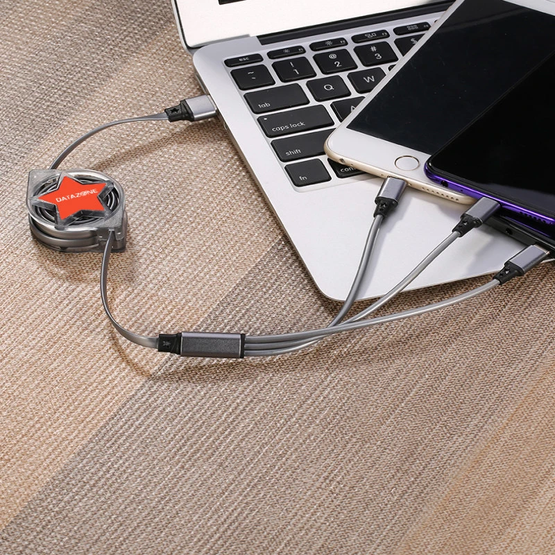 سلك شاحن 3 في 1 قابل للسحب، للأيفون والتايب سي والمايكرو الصغير لون رصاصي