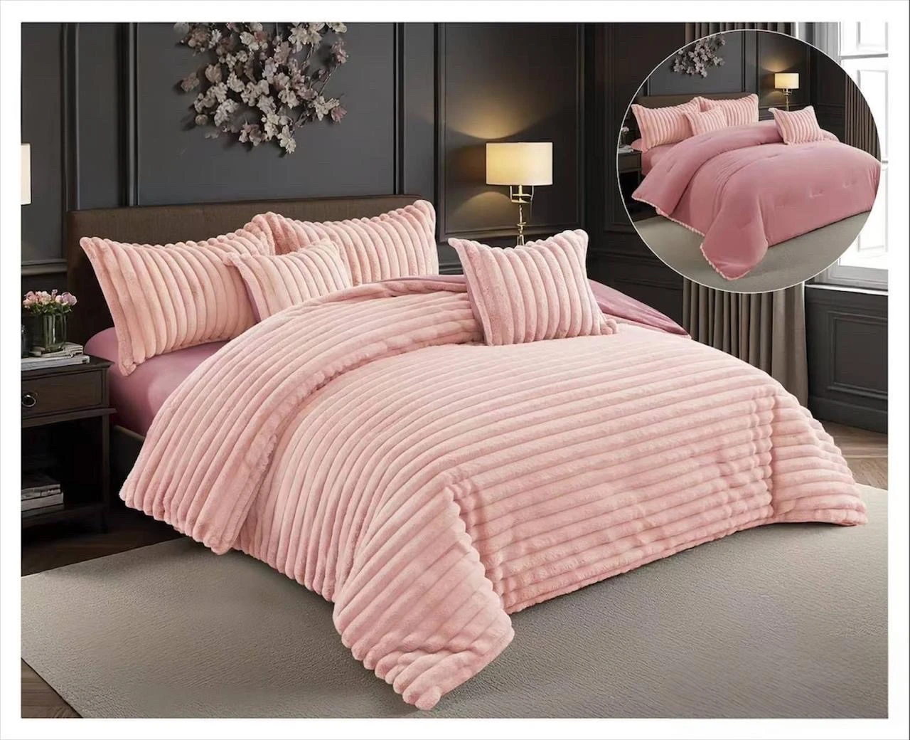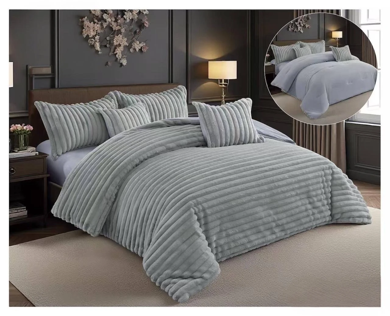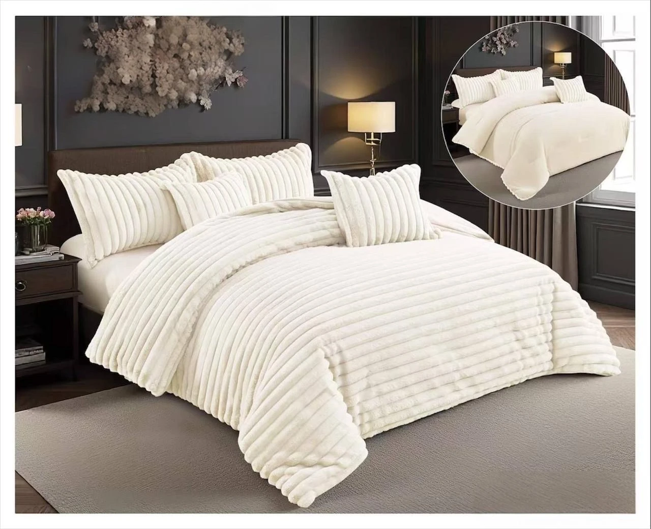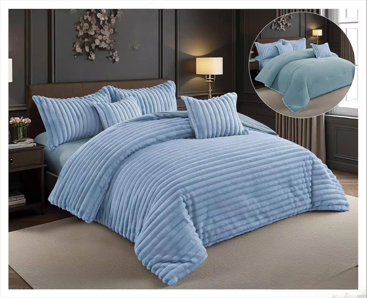 مفرش شتوي بأفضل الخامات يستخدم وجهين وجه فرو الأرنب وجه مخمل ناعم محفر تغليف فخم نفرين يتكون من 6قطع عباره عن 👇 1 لحاف نفرين 230*250 1 شرشف مغاط 200*200 2 كيس مخده 50*75 2 كيس خداديه مربع 45*45